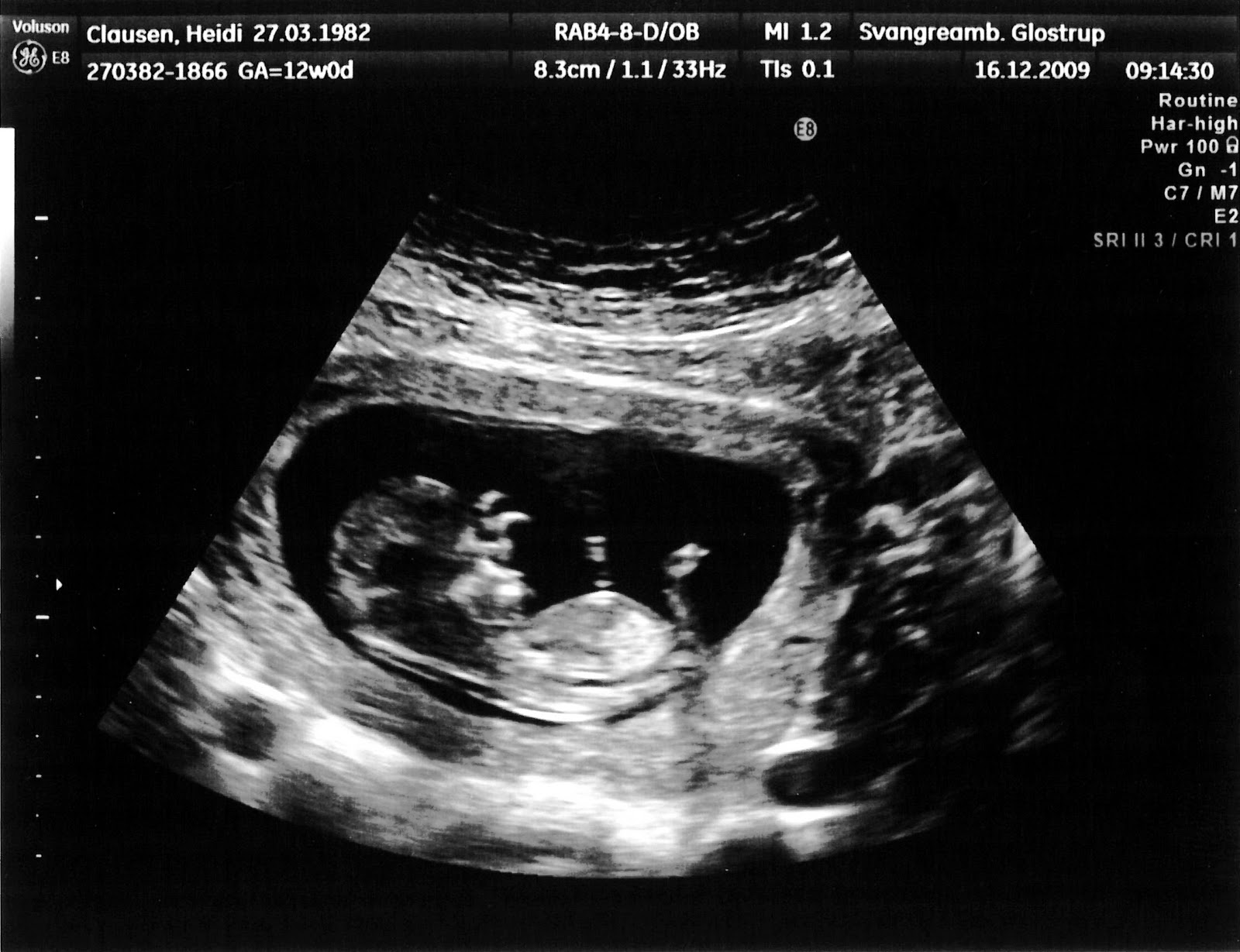 Jeg fik lavet nakkefoldsskanning selvom det først var meningen at jeg skulle have den lavet mellem jul og nytår, men lægen sagde at babyen lå helt rigtig og at vi lige så godt kunne lave undersøgelsen med det sammen. Alt gik rigtig fint, min risiko vurdering blev sat til 1:15687, så det er jo rigtig flot.