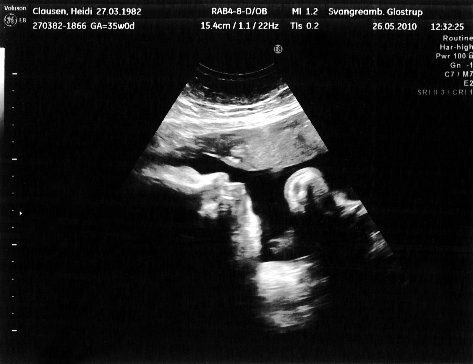 I dag var jeg også rigtig heldig, han lå bare helt rigtig og jeg har fået 2 rigtig fine 3D billeder af ham, han er bare så dejlig, nu blev det hele lige lidt mere virkeligt for nu har man jo hele tiden et billede inde i hovedet af ham, jeg glæder mig bare så meget til han kommer ud til os.