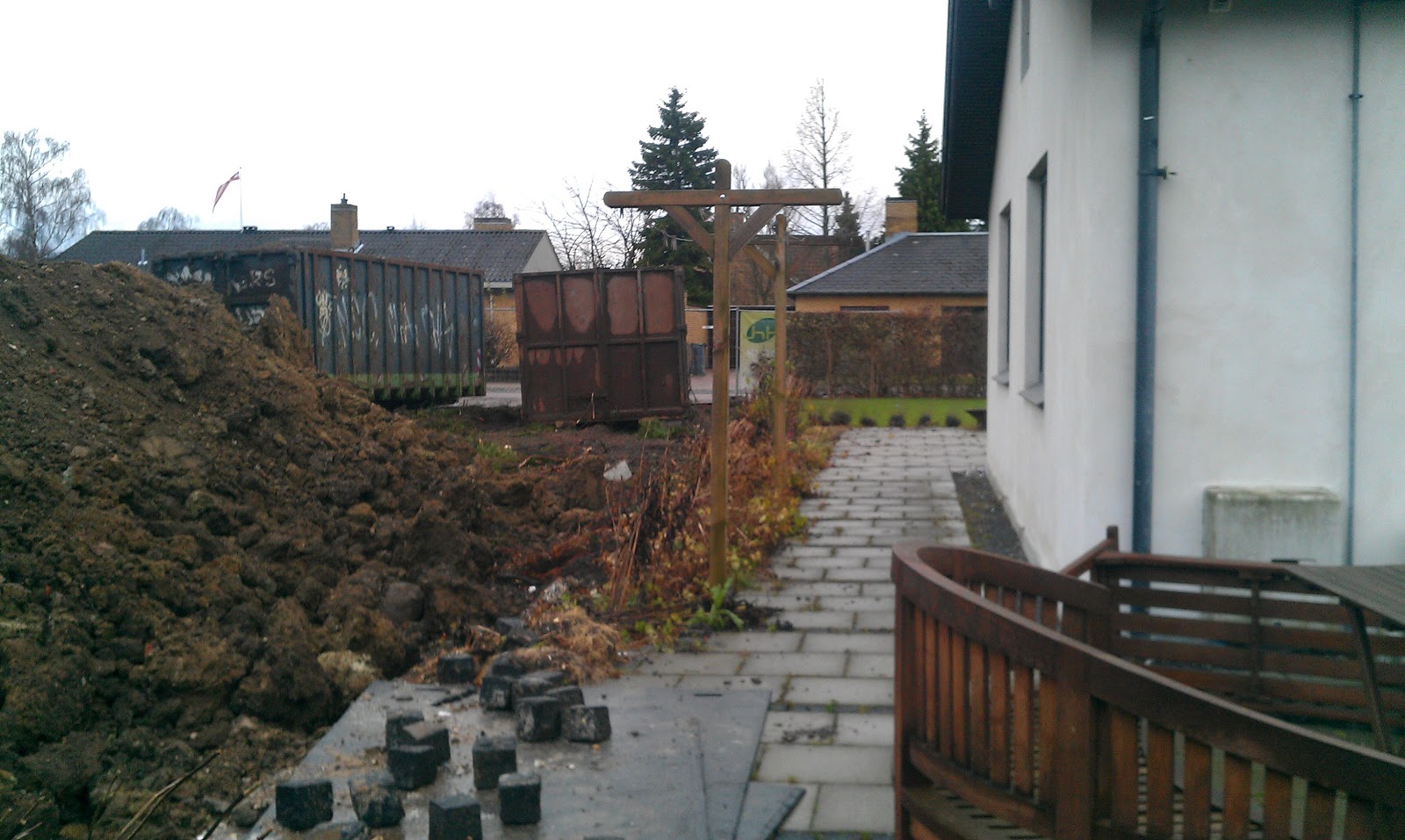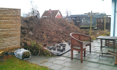 Da jeg kom hjem fra arbejde i dag kunne man så rigtig se at hækken ind til vores nye naboer er blevet fjernet, de fjernede hækken i onsdags, men det bliver jo så hurtigt mørkt, så jeg har ikke rigtig kunne se det før i dag.