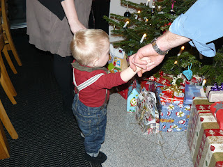 Så skulle der danses om juletræet og Casper syntes det var rigtig hyggeligt han smilede helt vejen rundt og hyggede sig så meget – vi fik synget et par sange indtil Casper sagde “nai” og så begyndte vi at åbne de sidste af Casper’s julegaver, han vare rigtig træt her til sidste og den sidste gave måtte vente til dagen efter, han kom i seng og sov som en sten – den lille trold.