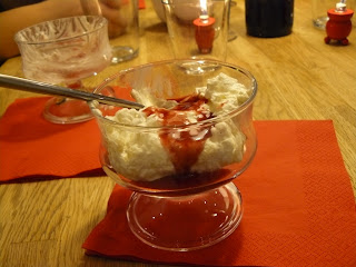 Til dessert fik selvfølgelig mor’s hjemmelaved Ris a la mande med kirsebær sauce. Far var den heldige der vandt mandelgaven.