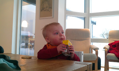 Da jeg kom hjem igen var Casper vågne igen og de havde lige spist frokost, Flemming ville gerne spille lidt computer, så Casper og jeg tog ned og hanlede i brugsen, så vi kunne bage nogle boller.