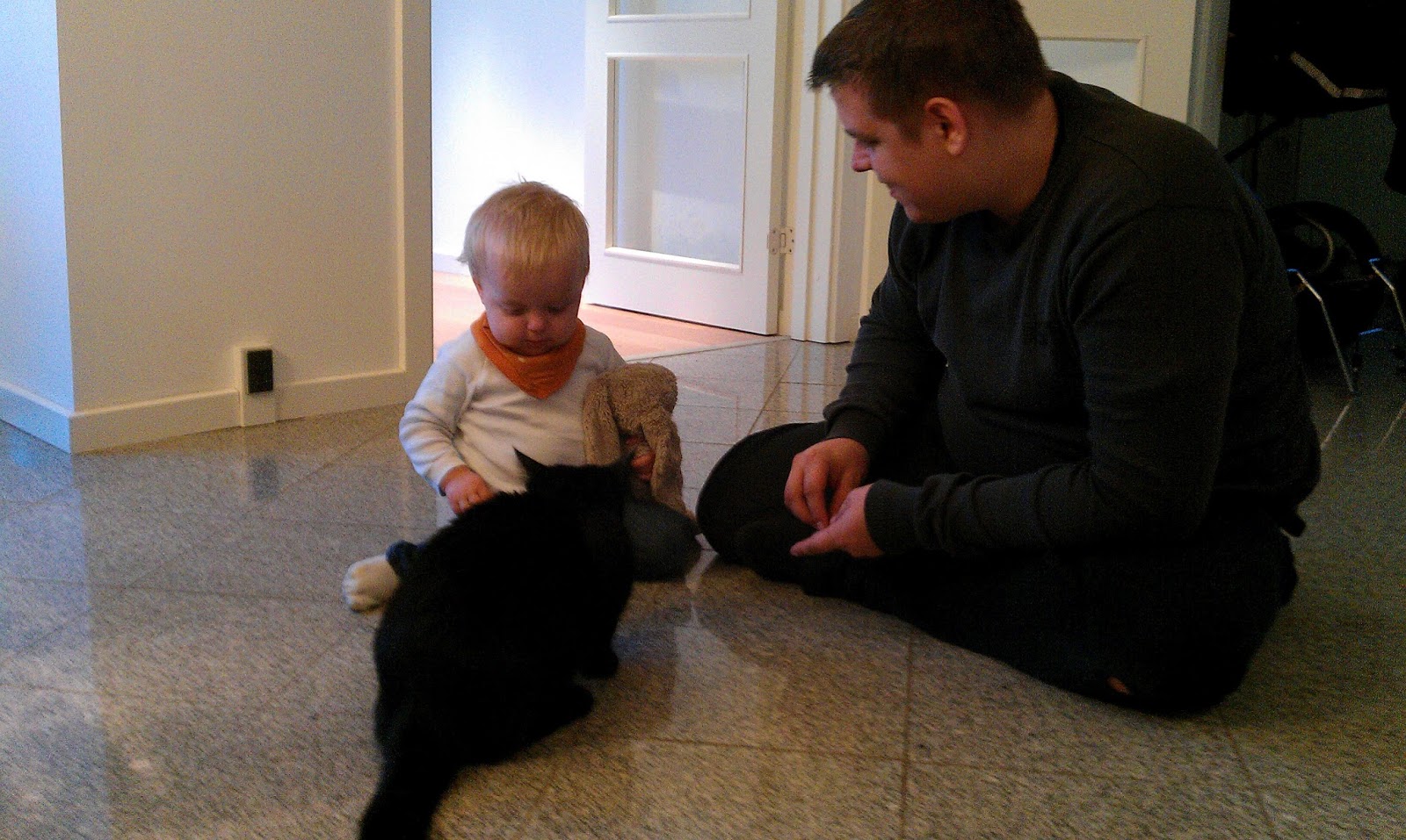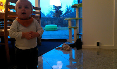 Casper er bare så glad for at vi har fået kat, han vil gerne hen til den hele tiden, og når vi skal have mad syntes han også at Choko skal have mad, så går han efter katten med en tallerken i hånden. Han han godt finde ud at at gå stille og roligt hen til Choko og sætte sig ned ved siden af den, og så for han som regel også lov til at nusse den lidt.