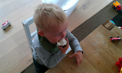 Vores genboer hold også legetøjs-loppemarked i deres indkørsel, og de havde en masse fine biler, så vi købte nogle til Casper, han elsker bare at lege med biler, og søndag da loppemarkedet var slut kom genboen oven i købet over med en hel pose fyldt med de biler de ikke fik solgt, det var så pænt af dem og Casper blev bare så glad.