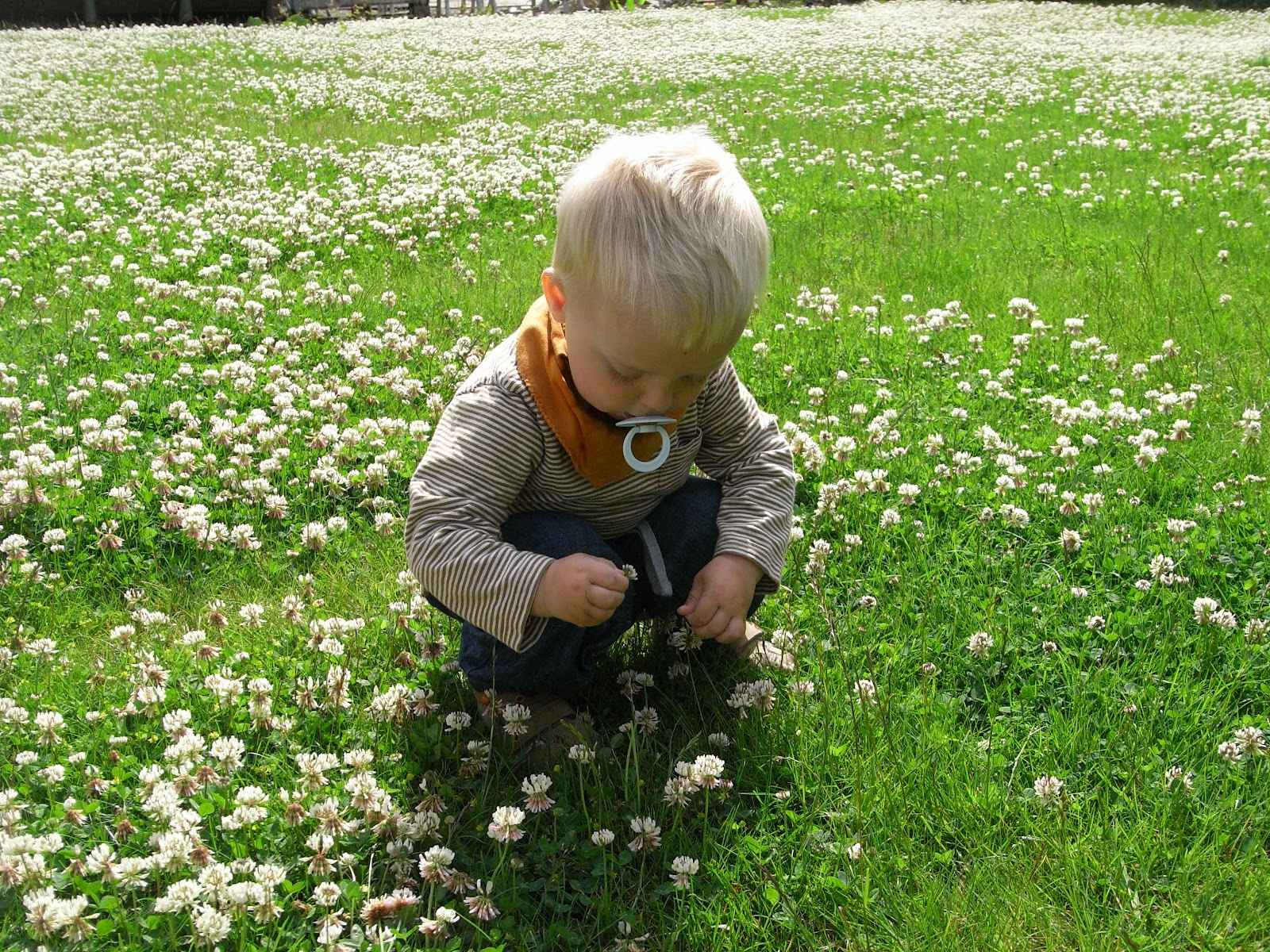 Casper og jeg startede med bare at hygge og lege, da Flemming stod op gik vi alle ud og Flemming slog græs, Casper hjalp med sin lille græsslåmaskine. Det så sjovt ud da noget af græsset var blevet slået fordi der var så meget kløver, græsplænen var jo helt hvid, så det så lidt ud som om den blev støvsuget.